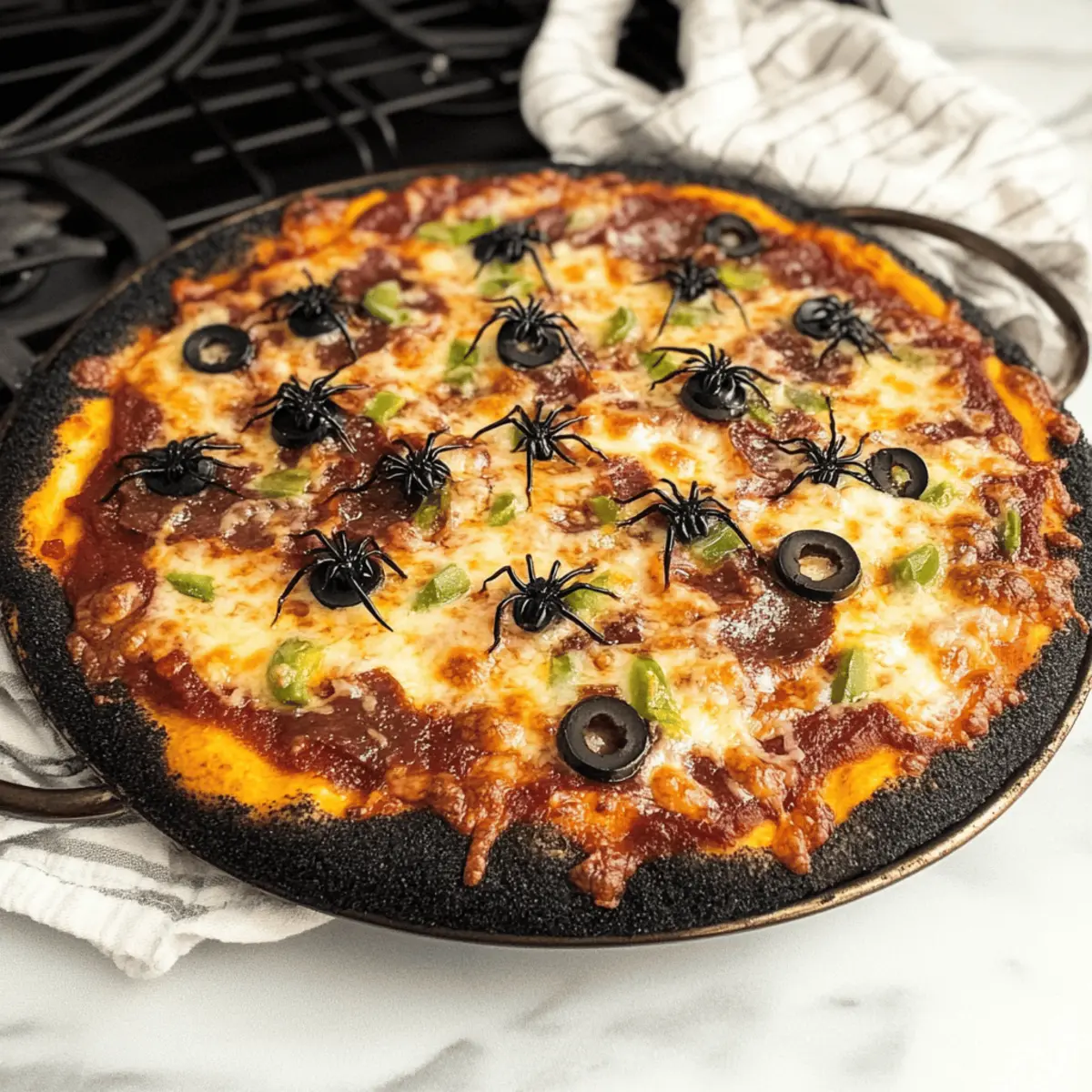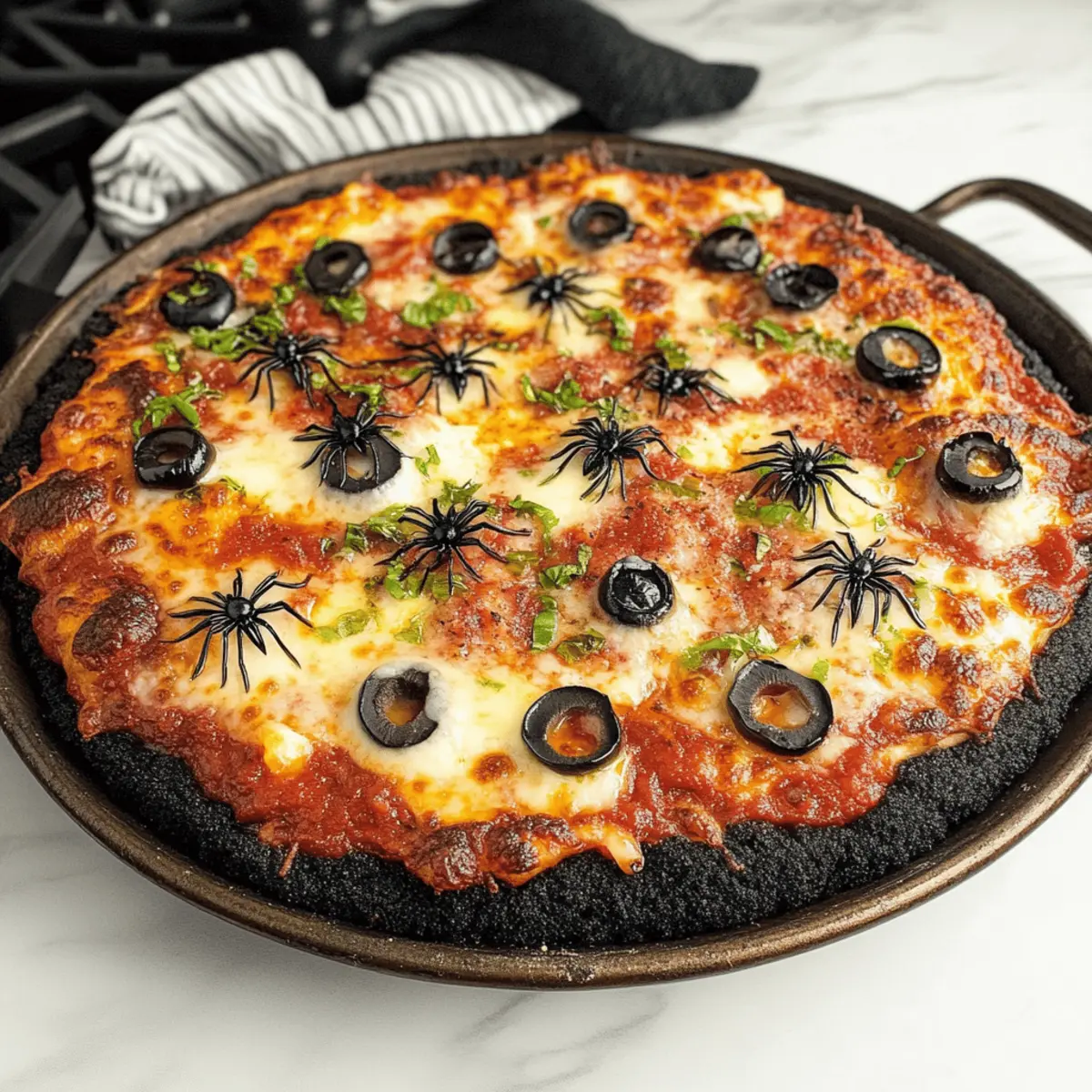 As I pulled the oven door open, a wave of anticipation washed over me. The moment had finally arrived! Standing before me was a Halloween pizza with a striking black crust, a delightful sight that turned our usual family pizza night into a festive celebration. This Halloween Pizza with Black Crust isn’t just a trick to the eyes; it’s a fun and whimsical take on a classic favorite, offering the familiar taste we all crave with a spooky twist. What’s even better? It’s easy to make and fully customizable, allowing you to unleash your creativity with toppings that everyone will enjoy. Whether you’re hosting a Halloween party or enjoying a movie night in, this visually striking dish is guaranteed to impress both kids and adults alike. Ready to discover how to create this culinary masterpiece? Let’s dive in! Why choose Halloween Pizza with Black Crust? Eye-Catching Appeal: This pizza’s striking black crust instantly adds flair to any Halloween gathering, making it a perfect centerpiece for festive occasions. Customizable Toppings: You have the freedom to personalize with your favorite ingredients— whether it’s classic pepperoni or fun creations like black olive spiders. Easy to Prepare: With straightforward steps and basic ingredients, you’ll impress everyone without spending hours in the kitchen. Perfect for busy families! Taste Meets Fun: The traditional pizza flavor shines through, so picky eaters won’t miss out on deliciousness. Fun for Everyone: Engaging kids in the kitchen becomes a delightful experience— they’ll love designing their own spooky creations! For more festive ideas, check out our Black Forest Dessert for a sweet ending to your spooky meal. Halloween Pizza with Black Crust Ingredients For the Dough All-Purpose Flour – Forms the base and structure of the dough. Substitution: Can use gluten-free flour blend in equal amounts. Warm Water – Activates the yeast and binds the ingredients together. Note: Ensure the water is at the appropriate temperature to activate yeast. Active Dry Yeast – Causes the dough to rise for a fluffy crust. Note: Ensure it’s fresh for best results. Activated Charcoal Powder (food grade) – Provides the striking black color. Note: Only use food-grade activated charcoal, not briquettes. Olive Oil – Adds moisture and elasticity to the dough. Substitution: Can use other oils like avocado oil if needed. Granulated Sugar – Feeds the yeast for proper dough rise. Note: Can substitute with honey or other sweeteners. Salt – Enhances flavor and regulates yeast activity. Note: Essential for flavor balance in the dough. For the Toppings Sauce – Choose your favorite, whether it’s classic marinara or a spooky pesto. Personalize with a range of ingredients according to taste. Cheese – A must for any pizza; mozzarella works beautifully for melting. Meat Toppings – Pepperoni or sausage add savory goodness. Consider experimenting with spooky shapes. Vegetable Toppings – Peppers, mushrooms, or even black olives can add a fun crunch! Get creative; black olives cut into spider shapes are a hit! Now you’re all set to create your very own Halloween Pizza with Black Crust! Enjoy mixing and matching toppings to make this spooky delight perfect for your festive occasion. Step‑by‑Step Instructions for Halloween Pizza with Black Crust Step 1: Bloom the Yeast In a medium bowl, combine 2 teaspoons of active dry yeast with 1 tablespoon of granulated sugar and 1 cup of warm water (about 110°F). Stir gently, and let this mixture sit for 5–8 minutes until it becomes frothy and bubbly, signaling that the yeast is activated and ready to work its magic for your Halloween pizza with black crust. Step 2: Make the Dough In a large mixing bowl, combine 3 cups of all-purpose flour, 1 tablespoon of food-grade activated charcoal powder, and 1 teaspoon of salt. Pour in the bloomed yeast mixture and 2 tablespoons of olive oil. Mix everything together until no dry flour remains, ensuring the dough is combined smoothly. If the mixture feels too dry, adding a splash of warm water will help achieve the perfect consistency. Step 3: Knead the Dough Transfer the dough onto a lightly floured surface and knead it for about 5–7 minutes until it becomes smooth and elastic. Shape it into a ball, lightly grease the bowl with some olive oil, and place the dough back inside. Cover the bowl with a clean kitchen towel and let it rise in a warm, draft-free area for about 1 hour, or until it has doubled in size. Step 4: Shape and Preheat Once the dough has risen, preheat your oven to 475°F (245°C) to ensure it’s hot enough to create a crispy crust. Turn the risen dough onto a greased surface and gently stretch it into a large circle, approximately 12 inches in diameter. Transfer the shaped dough to a greased pizza pan or a baking sheet, ready to be adorned with your favorite spooky toppings. Step 5: Add Toppings and Bake Spread a generous layer of your chosen sauce over the black crust, then sprinkle with cheese and your favorite toppings. Experiment with fun shapes or colors to enhance the Halloween theme! Place the pizza in the preheated oven and bake for approximately 15 minutes, or until the crust appears golden brown and the cheese is bubbling and melted beautifully. Step 6: Cool Before Serving After baking, carefully remove the Halloween pizza with black crust from the oven and let it sit for 5–10 minutes. This cooling period allows the flavors to settle and makes it easier to slice. Once cooled slightly, grab your pizza cutter and slice away, making it ready for the festive feast! Expert Tips for Halloween Pizza with Black Crust Dough Temperature: Use warm, not hot, water when blooming the yeast; too hot can kill the yeast and ruin your Halloween pizza with black crust. Avoiding Stickiness: If the dough is too sticky while kneading, dust your surface and hands with a bit of flour to make it manageable. Charcoal Mixing: Gradually incorporate activ